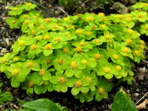 bylina skalna, roślina wieloletnia, na klasyczne skalniaki, do nasadzeń pojedynczych, do nasadzeń w grupach, kwiat żółto-zielony (III-V), liść zielony, wys. 20, wilgotność duża, stanowisko zacienione lub półcień, gleba próchnicza, lekko kwaśna,