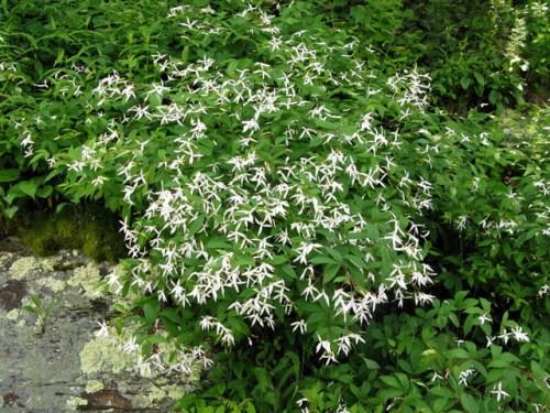 bylina rabatowa, roślina wieloletnia, na rabaty, do nasadzeń pojedynczych, do nasadzeń w grupach, kwiat biały (VI-VII), liść zielony, czerwone pędy, wys. 70, wilgotność zwiększona, stanowisko półcieniste, gleba przepuszczalna, żyzna, lekko kwaśna, mrozoodporność zadowalająca,
