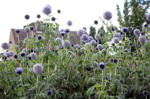bylina rabatowa, roślina wieloletnia, na rabaty, na kwiat cięty, na suche bukiety, kwiat niebiesko-srebrzysty (VI-IX), liść srebrzysto-zielony, wys. 120, wilgotność obniżona, stanowisko słoneczne, gleba przepuszczalna, żyzność uboga,